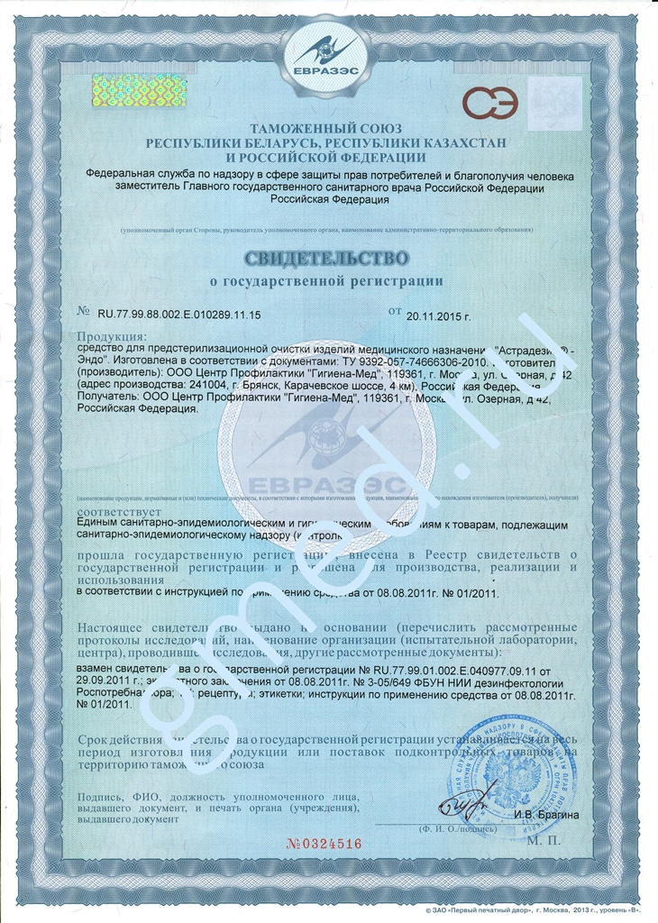 - для предстерилизационной и окончательной очистки изделий медицинского назначения (вкл. хирургические, в т. ч. микрохирургические и стоматологические, в т. ч. вращающиеся, инструменты, жёсткие и гибкие эндоскопы и инструменты к ним) из различных материалов ручным и механизированным способом- для предстерилизационной очистки вышеперечисленных изделий медицинского назначения механизированным способом в ультразвуковых установках.