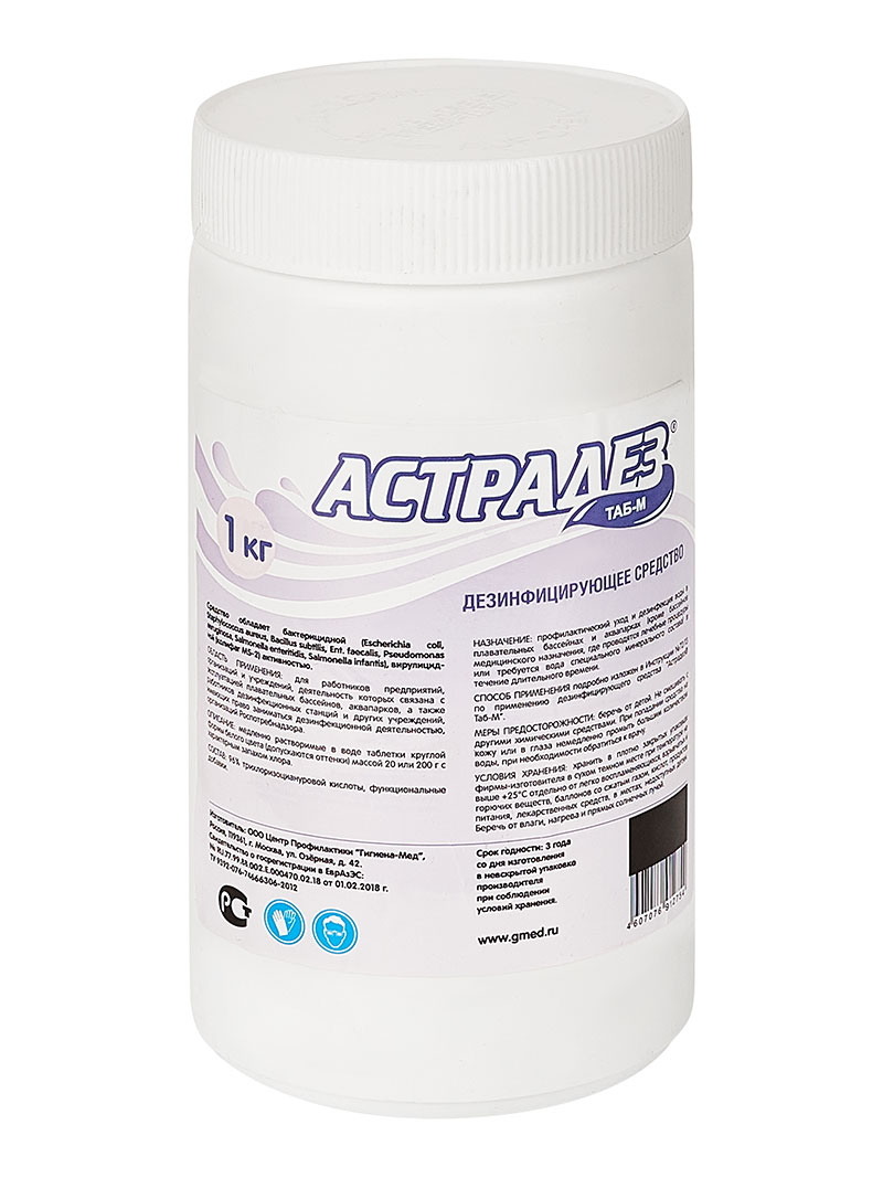 Таблетки для дезинфекции воды АСТРАДЕЗ ТАБ М, 1 кг (200 г)