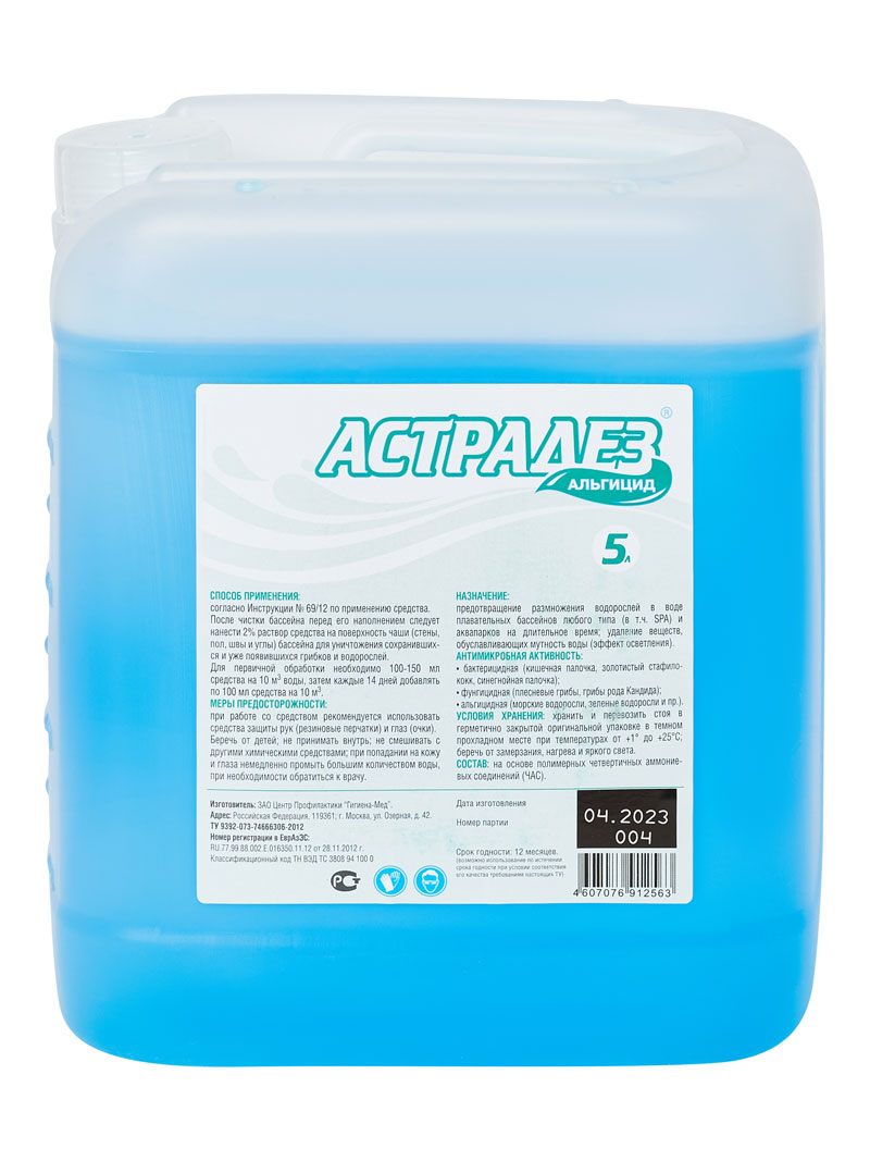 Средство для уничтожения водорослей АСТРАДЕЗ АЛЬГИЦИД, беспенный, 5 л
