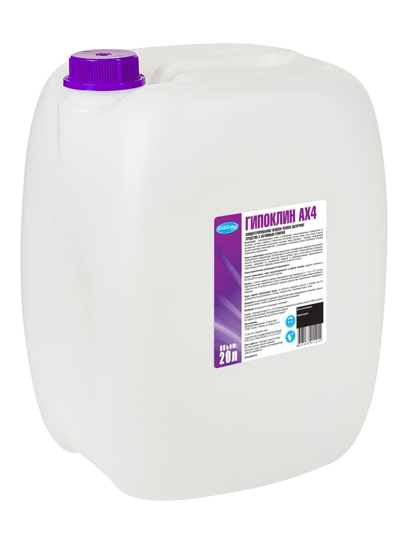 Средство «Гипоклин АХ4» содержащий в качестве действующего вещества гипохлорит натрия, а также комплекс поверхностно-активных веществ (ПАВ), щелочей, комплексообразователей, антикоррозионных добавок. Не содержит красителей и отдушек.