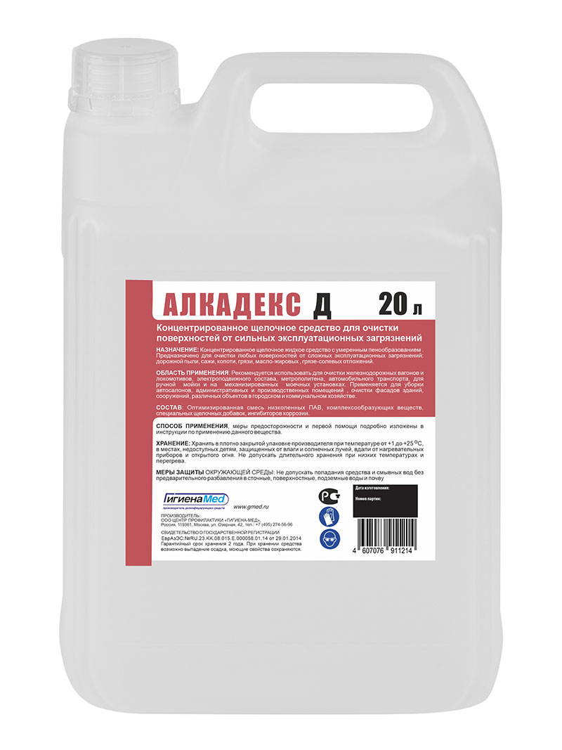 Концентрированное жидкое щелочное моющее средство с умеренным пенообразованием, Алкадекс Д 20л