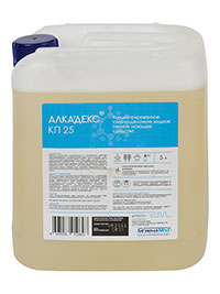 «Алкадекс КП 25» представляет собой концентрированное жидкое сильнощелочное пенное моющее средство. Содержит оптимальное соотношение щелочных, комплексообразующих, антикоррозионных и диспергирующих веществ, а также специальных пенных ПАВ, что позволяет быстро удалять загрязнения неорганического и органического характера (денатурированный и нативный белок, жиры, масла, пригары, особо стойкие отложения дымовой смолы, копоти и др.) с поверхностей из хромоникелевой, нержавеющей стали, стеклоэмали, керамики, резины, щелочестойких пластмасс и др., а также применяется для обработки (очистки) столового яйца. Идеально подходит для обработки с помощью пенообразующего оборудования ( пеногенераторы, стационарные и мобильные пенные станции и др.). возможно применение методом замачивания мелких частей оборудования вручную, а также при помощи щеток.