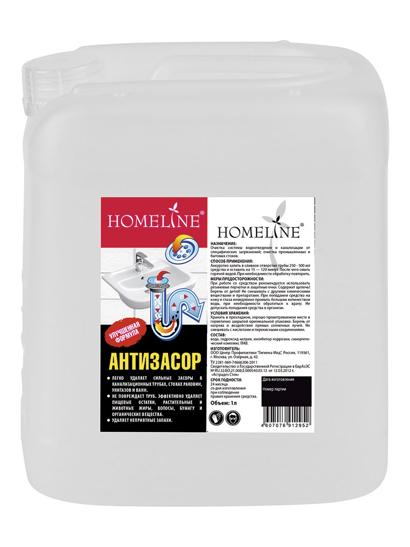 Средство для чистки труб "Антизасор" HOMELINE, 5 л.